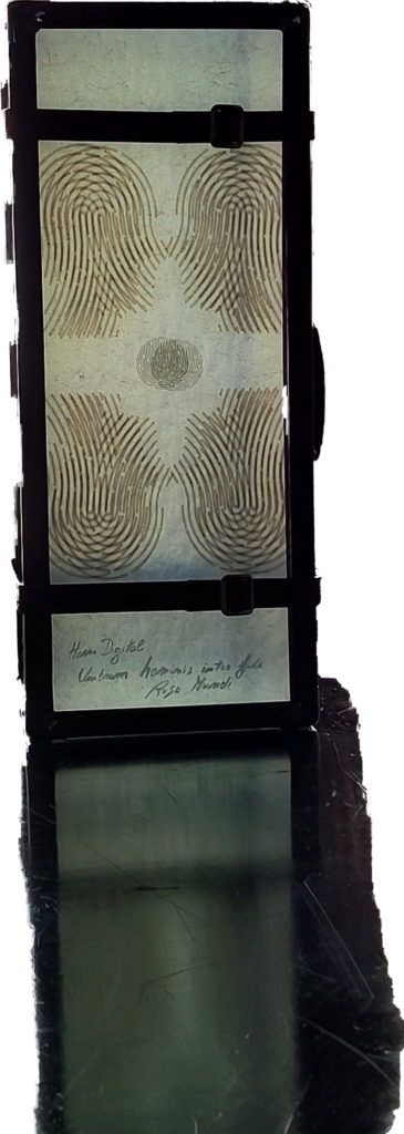 All’interno delle scatole sono nascoste delle scritte, una sorta di messaggio universale, in latino (in altri casi in greco antico o in arabo antico o in aramaico) al fine di rendere ancor più spaziale ed infinita l’interpretazione e lo sguardo e il significato possibile conferito dall’osservatore.